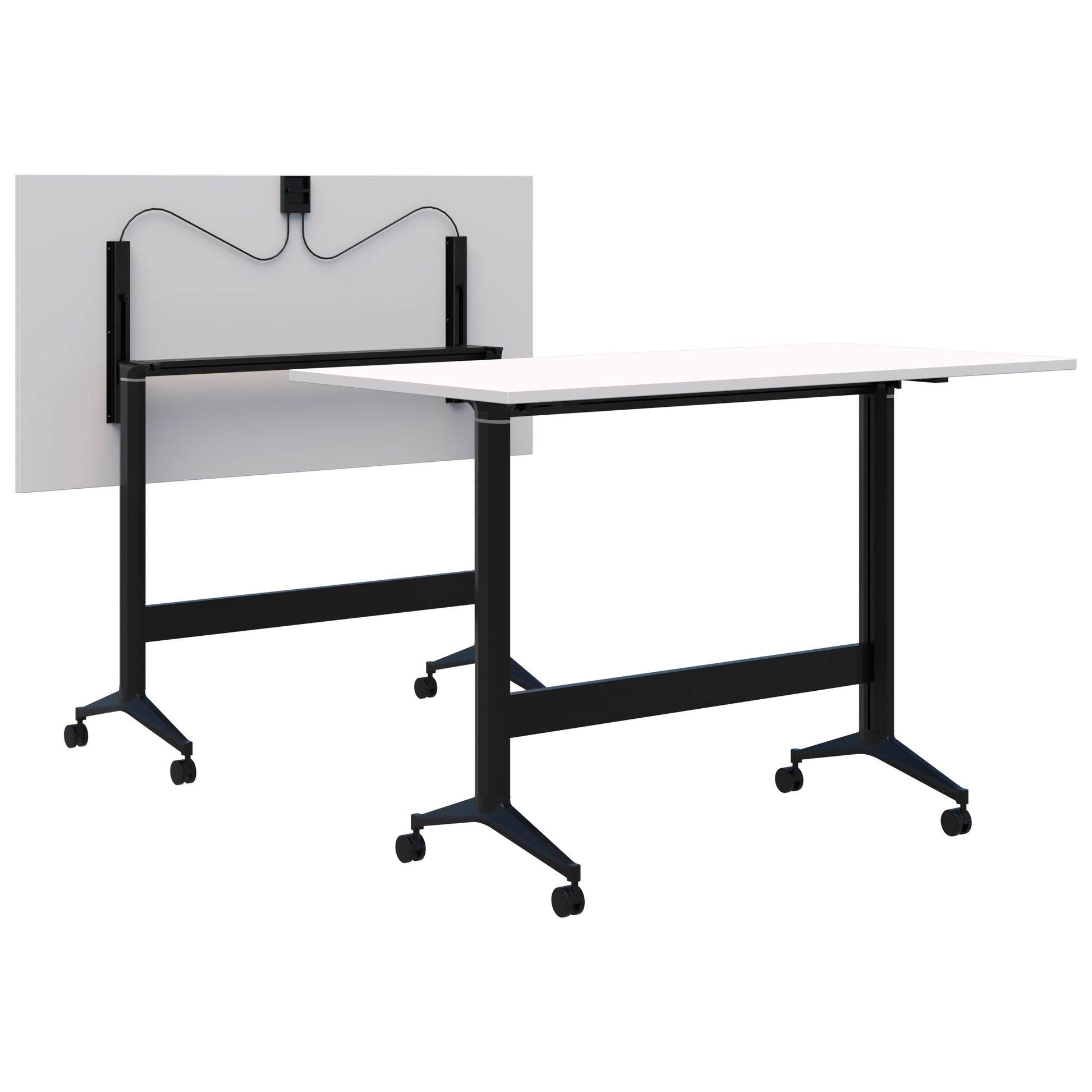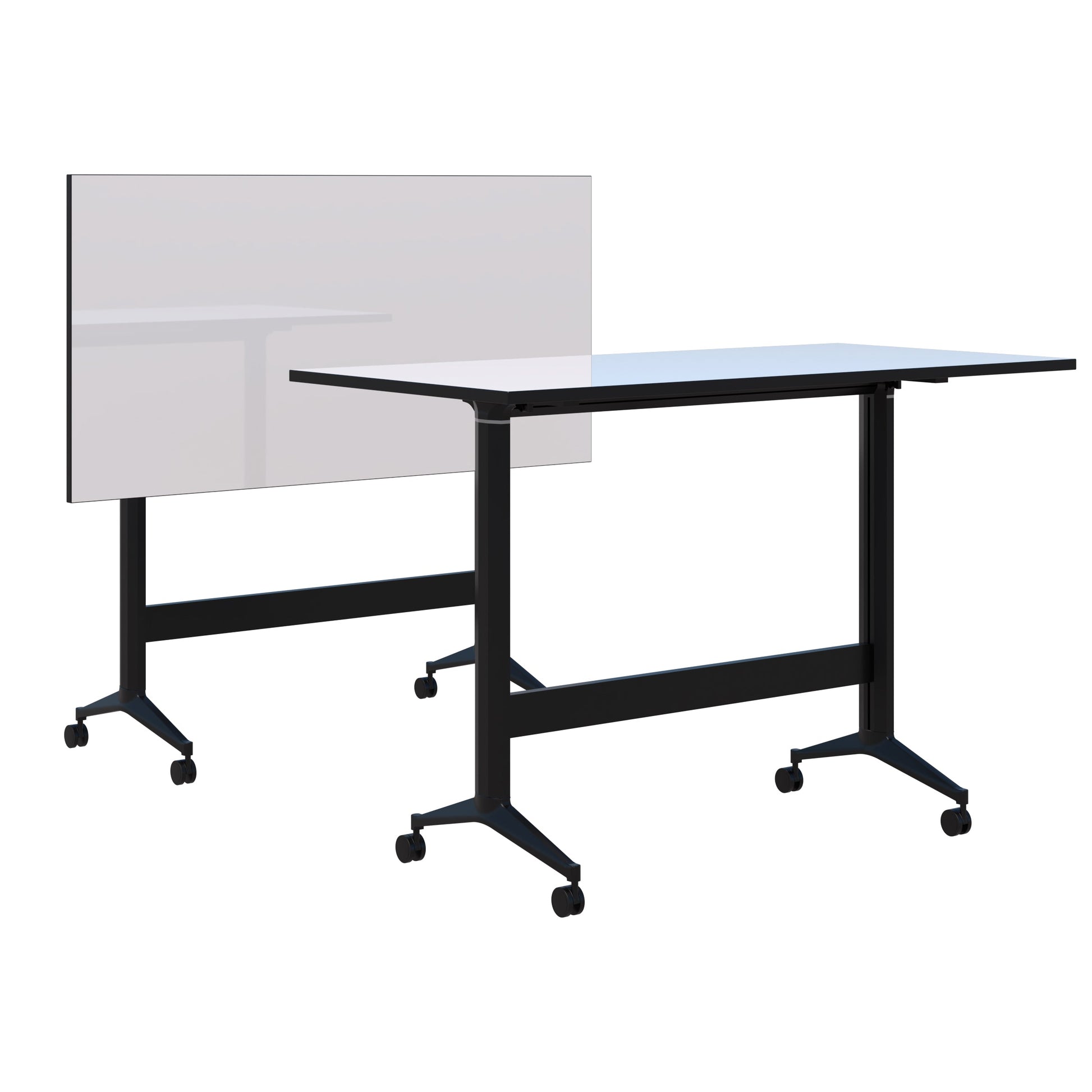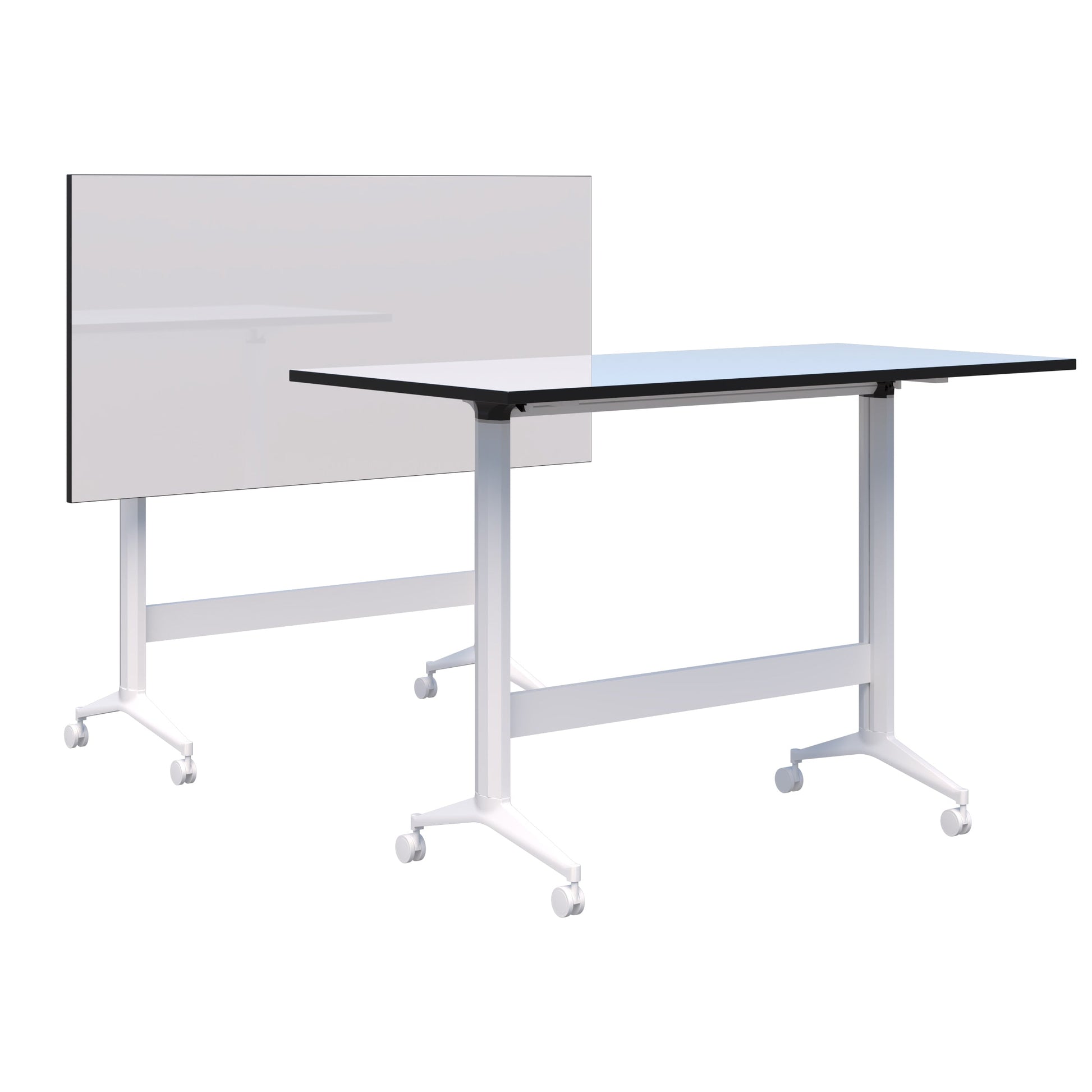 Ultimate flexibility in your meeting space, simply fold the top away and wheel away when not required. The simple and smooth one-hand flip-top operation, top folds up and locks down in one easy motion. Also available in a Writable HPL Whiteboard top.
