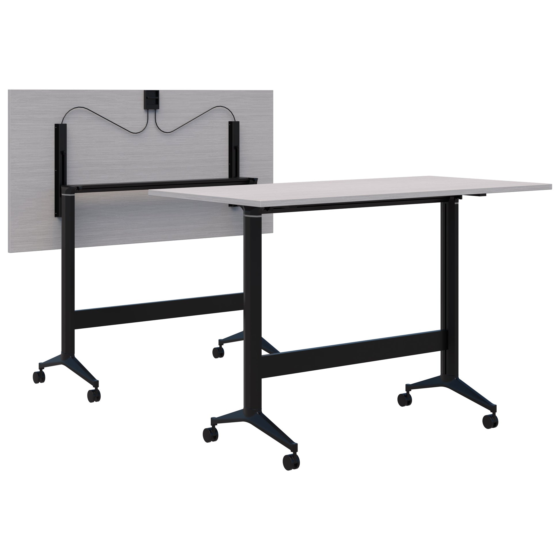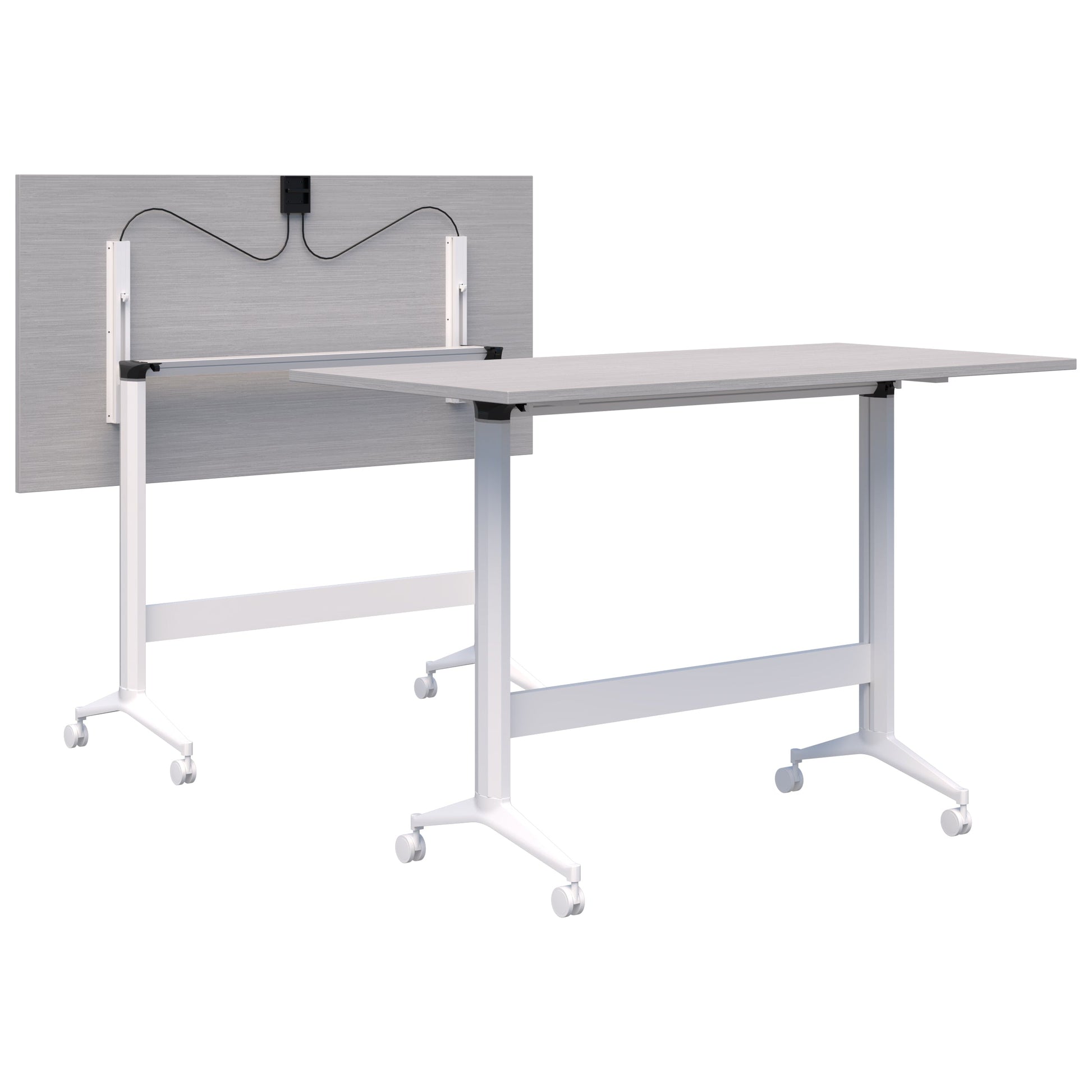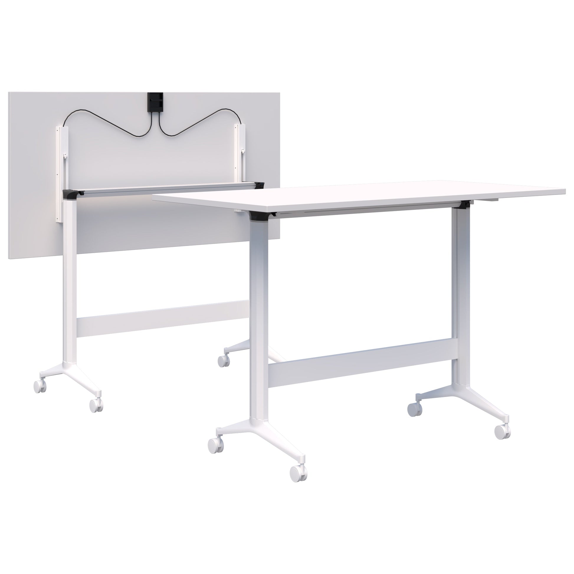 Ultimate flexibility in your meeting space, simply fold the top away and wheel away when not required. The simple and smooth one-hand flip-top operation, top folds up and locks down in one easy motion. Also available in a Writable HPL Whiteboard top.