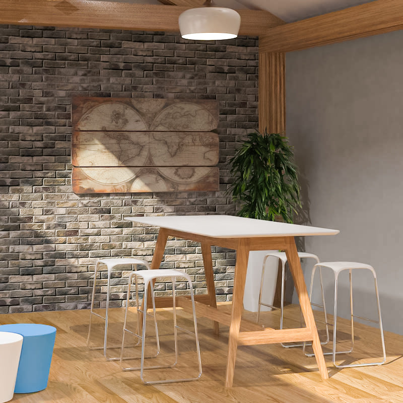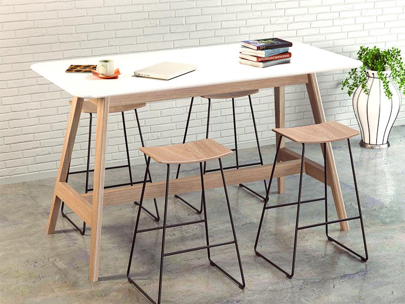 The Stance Bar Leaner has a contemporary Scandinavian inspired design with an Ash veneer top with radius corners and shark nose edge. The 1050mm high leaner table is the perfect height to be used with bar-type stools. The Stance bar leaner has a clean minimalist aesthetic