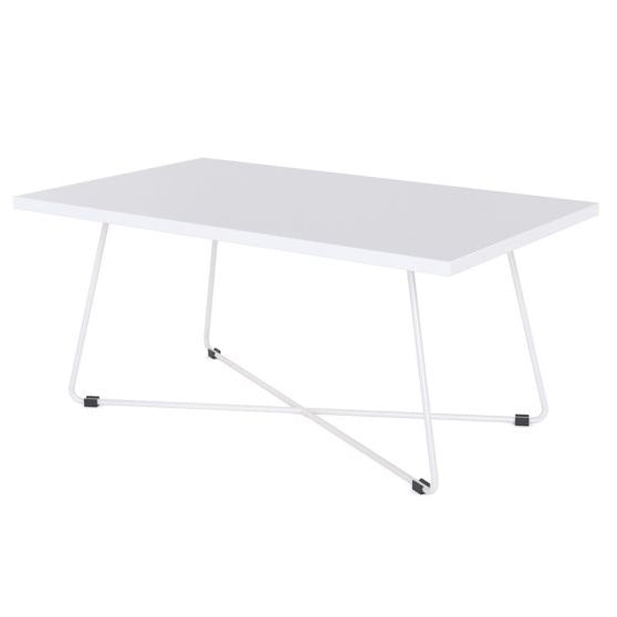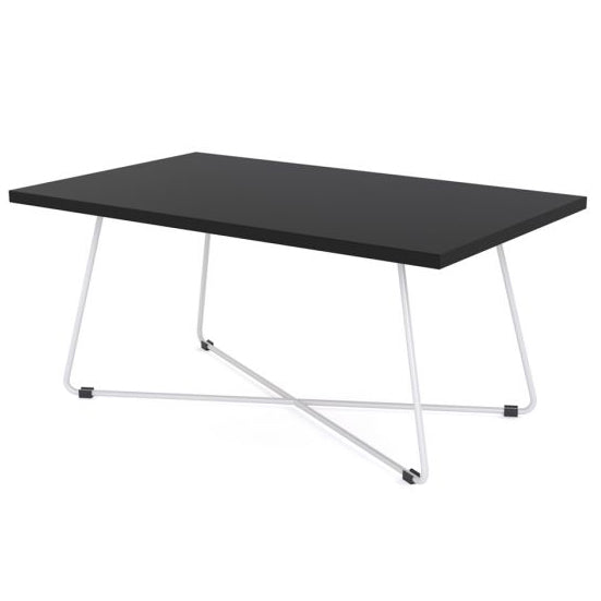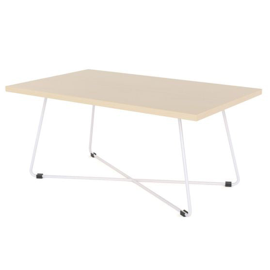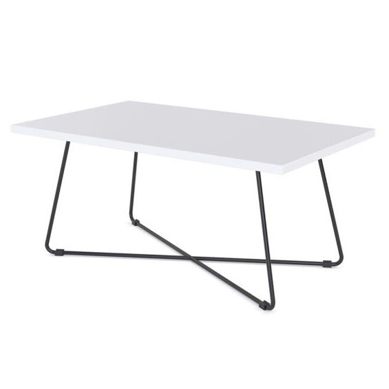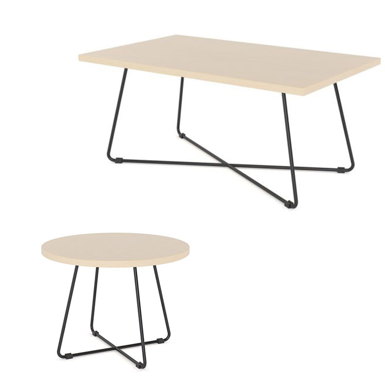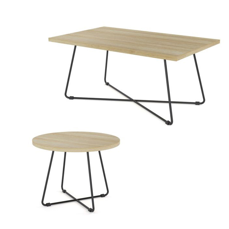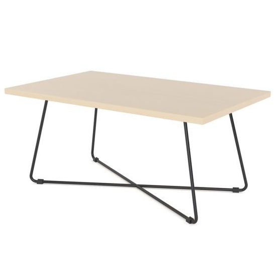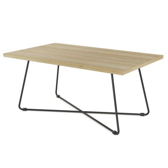 The Zion Coffee Table in Nordic Maple, Atlantic Oak, and Black Worktop contrast with a black or white powder-coated metal frame to create a trendy look that is sure to stay in style.
